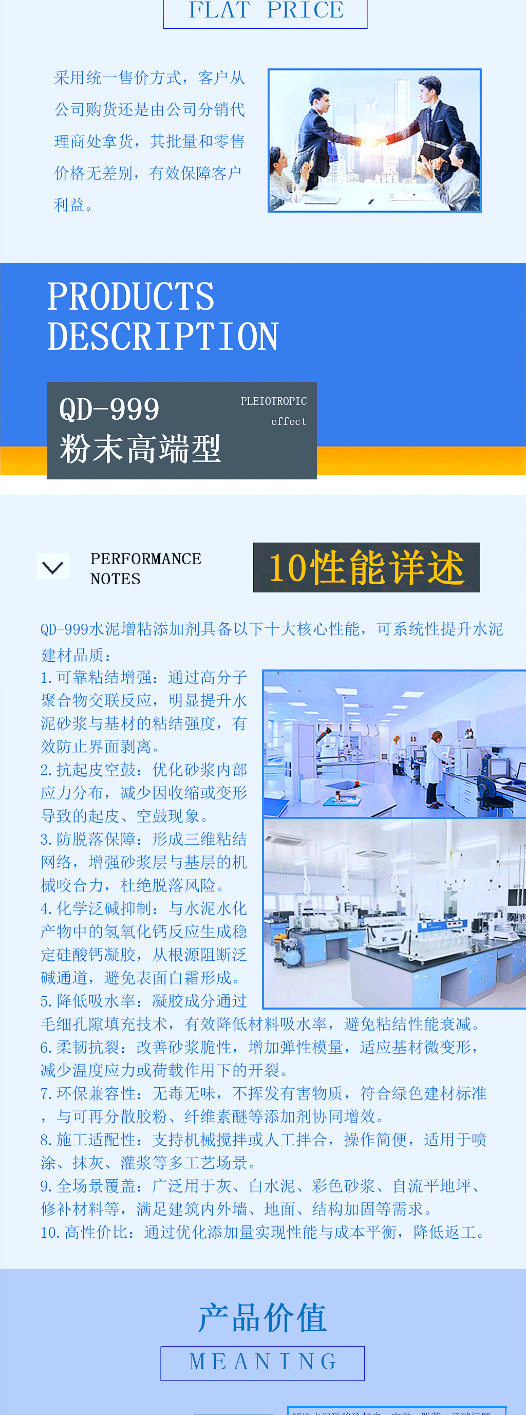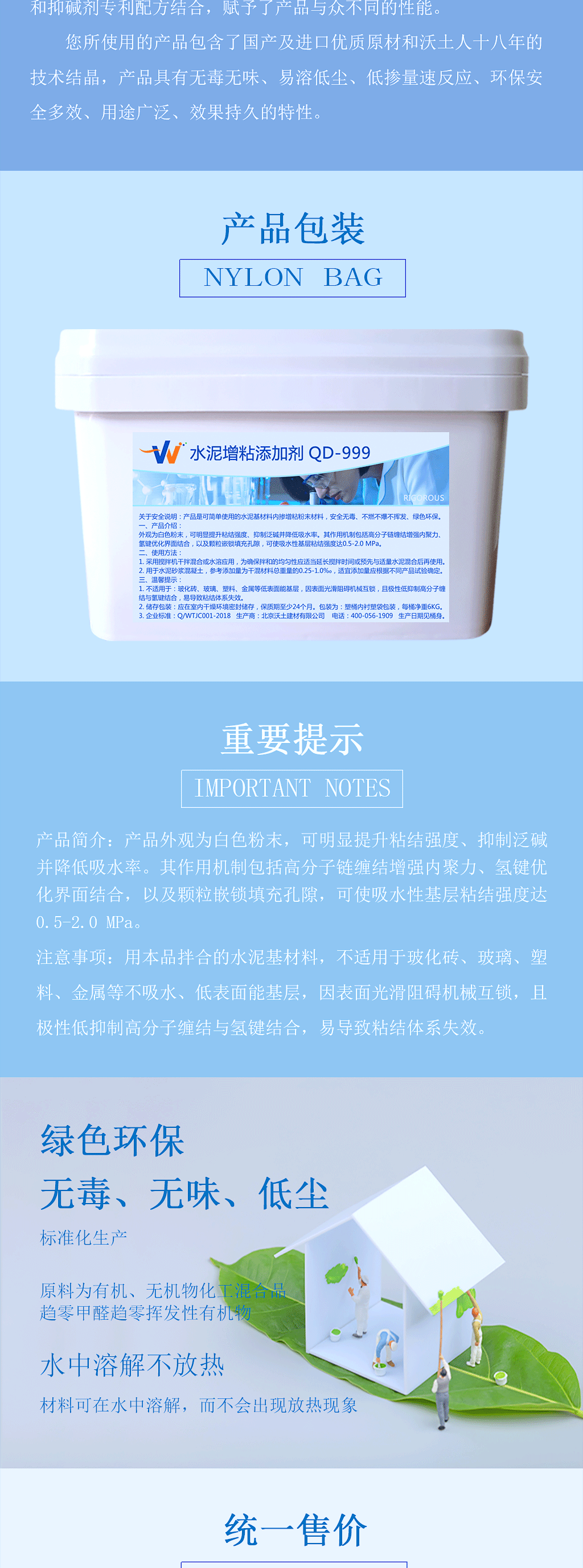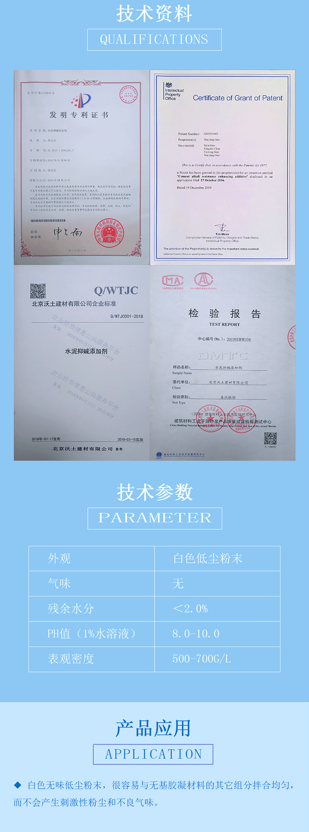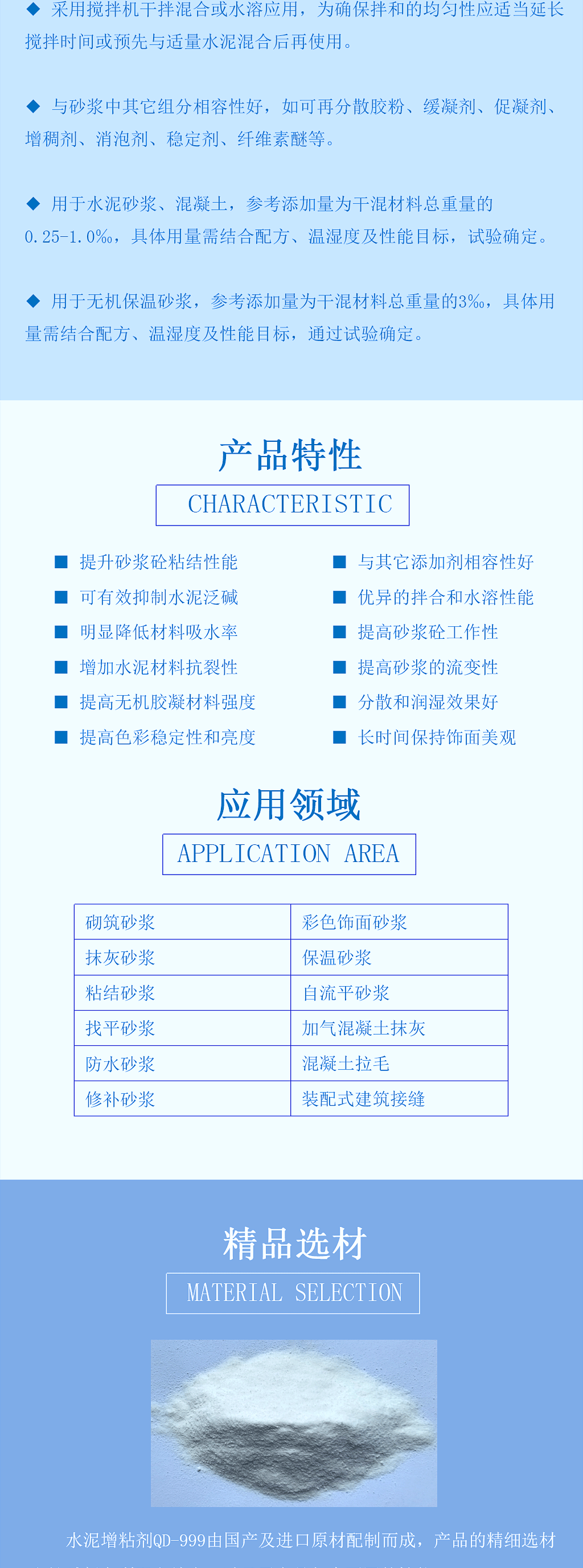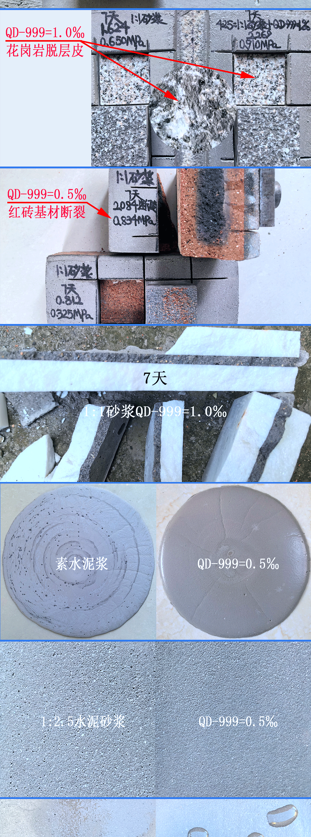 QD-999水泥增粘剂,是一款创新型水泥基内掺增粘粉末环保材料。其作用机制包括高分子链缠结增强内聚力、氢键优化界面结合,以及颗粒嵌锁填充孔隙,可使吸水性基层粘结强度达0.5-2.0 MPa,符合JGJ/T 70-2009标准的高性能要求。其专利抑碱体系可与水泥水化产物反应生成C-S-H凝胶,形成致密阻碱层,有效控制碱骨料反应的发生。采用高分子疏水改性结合纳米级孔隙填充技术,使材料吸水率降低30%-50%。产品的水化调控技术可优化砂浆流变特性,延长可操作时间,同时改善基层浸润效果与成膜均匀度。该产品适用于建筑饰面、结构修复、3D混凝土打印等工程场景,但不建议用于玻化砖、金属等非吸水性光滑基层。QD-999通过创新材料科技,为工程提供长效、稳定的性能解决方案。