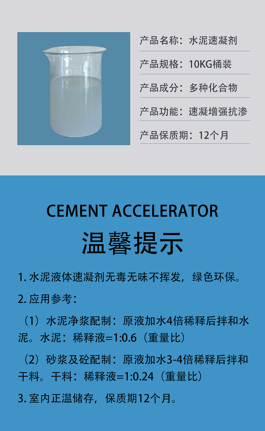 优选原料内含速凝抗渗增强助剂配置而成的水泥砂浆混凝土液体速凝剂,材料无毒无味不挥发绿色环保。